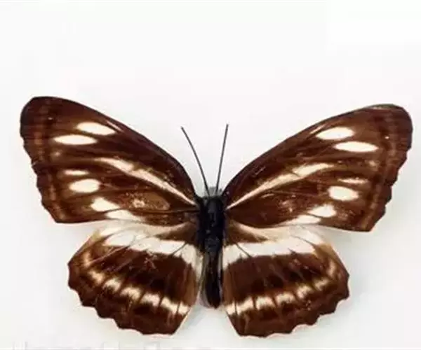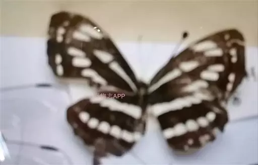 翅展45—51mm。翅面黑色,斑纹白色前翅中室有一白色纵纹,断续状;翅反面棕红色。端部呈 小环蛱蝶(图一) 三角形,中域内的白斑呈弧形排列。反面翅褐色,前翅基部沿外缘至中室三角形斑具1白色细纹,后翅横带两侧无黑褐色外围线。飞行缓慢,喜滑翔。