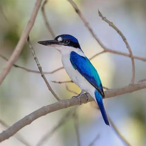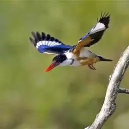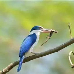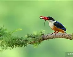 白领翡翠:有50个亚种。体长18厘米,体重35-40克。是一种蓝白色翡翠鸟。…