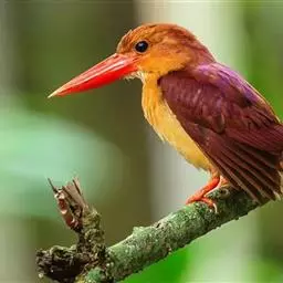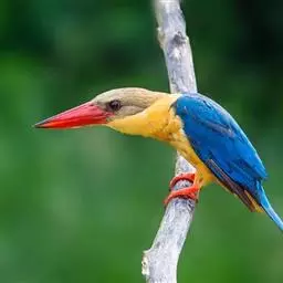 鹳嘴翡翠:体长33-37厘米。体重140-200克。共有13个亚种,体型大,嘴形巨大、侧扁,似鹳嘴…