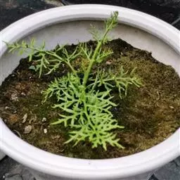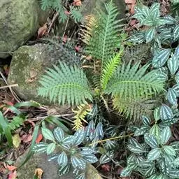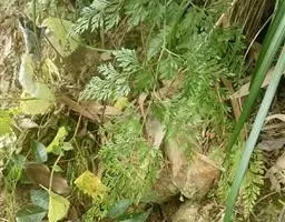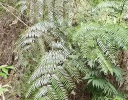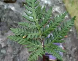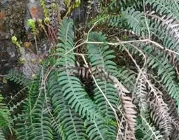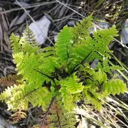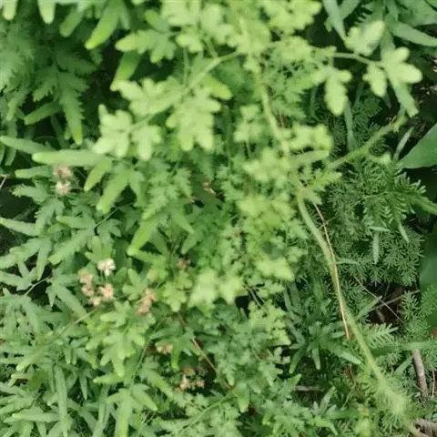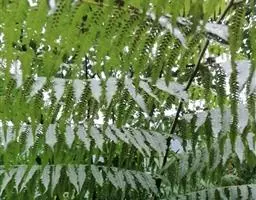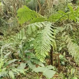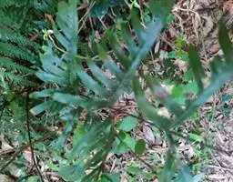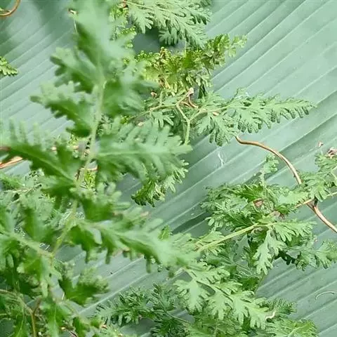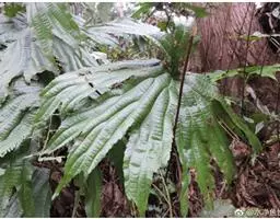 多年生攀援草质藤木,植株长5-6m。叶二型,厚纸质,羽片多数,对生,于叶轴的短枝上相距约25cm,短枝顶端着生一丛红棕色短柔毛;营养羽片生于叶轴下部,叶柄长4-4.5cm,柄先端具狭边,羽片掌状深裂,裂片6,披针形,长17-22cm,宽1.8-2.5cm,基部截形或阔楔形,全缘,有软骨质狭边,干后常向下面反卷。孢子羽片生于叶轴的上部,二叉掌状深裂至近基部,裂片与营养裂片同形,长20-30cm,宽2-2.5cm;叶脉分离,二叉状分枝直达叶缘。孢子囊穗褐色或绿褐色,线形,长2-5mm,紧密排列,有孢子囊5-6对;孢子淡黄色,四面型。