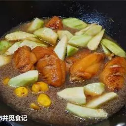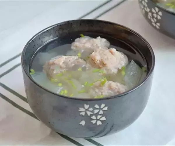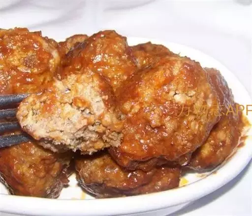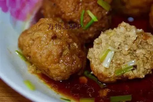 3.锅内留油,下入姜片、加入鸡汤、放入大肉丸子,放盐、味精、白糖、老抽王,用小火烧至汁浓,再用湿生粉勾芡收汁装碟即成。