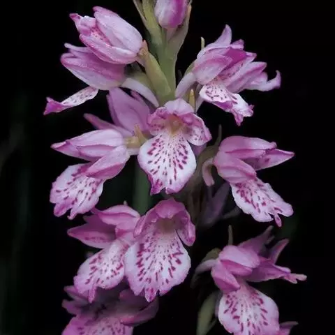 剑叶虾脊兰(学名:Calanthe davidii Franch.):植株紧密聚生,无明显的假鳞茎和根状茎。具数枚鞘和3-4枚叶。叶在花期全部展开,剑形或带状,两面无毛。花葶出自叶腋,直立,粗壮,长达120厘米,密被细花;花序之下疏生数枚紧贴花序柄的筒状鞘;鞘膜质,无毛;总状花序长8-20厘米,密生许多小花;花黄绿色、白色或有时带紫色;萼片和花瓣反折;萼片相似,近椭圆形;花瓣狭长圆状倒披针形,与萼片等长,中部以上宽1.8-2.2毫米,先端钝或锐尖,具3条脉。蒴果卵球形,长约13毫米,粗7毫米。花期6-7月,果期9-10月。