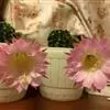 花着生在茎节顶部,花瓣约10瓣左右,呈竹叶状。花朵展开时可见淡黄色六角形花蕊。通常多为一朵,花大,花瓣整齐,呈辐射状。花瓣偏尖细直,开花时花瓣平均向四周伸开,形状像张开的伞,花瓣规则而又整齐。花筒较短,花色多为纯红和桃红,花朵白天开放,夜问闭合,次只再开、单朵开7-10天,全株开花20-30天。人形植株可着花百朵以上,花期3-5月。