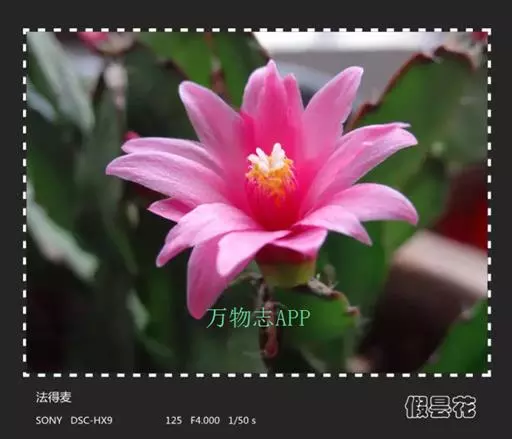 茖花之舞。花筒较短,花瓣也为单层,花瓣排列规则而又整齐。花为粉红色,与假昙花的花极为相似,不易区分,从茎节上辨别比较准确。