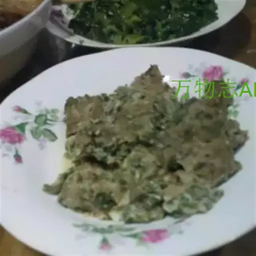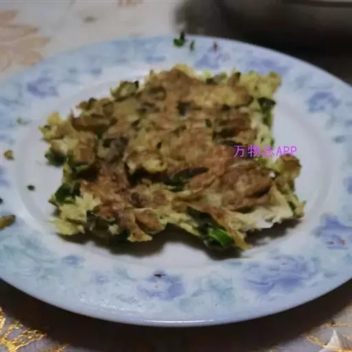 最后将一件好的"薄饼"翻过来放上鸡蛋、青菜,将正反两面煎熟,吃时淋上材料 3 调成的酱汁即可。