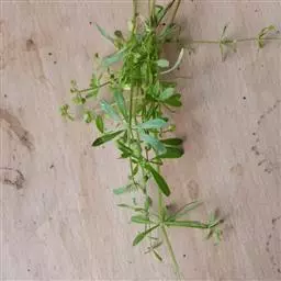 【药材识别】本品根细小。茎呈四棱柱形,多分枝,长20~30cm,直径约lmm, 猪殃殃 灰绿色或绿褐色,棱上有侧生剌毛;质脆,易折断,断面中空。叶6~8片轮生,无柄,叶片多卷缩或破碎,完整者线状披针形或近倒披针形,长1~5.5cm,宽0.2~1cm,边缘及下面中脉有倒生刺毛。聚伞花序腋生或顶生,花小,易脱落。果小,由2个球形分果片组成,绿褐色,密生白色钩毛。气微,味淡。