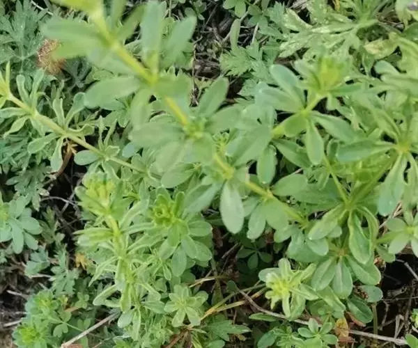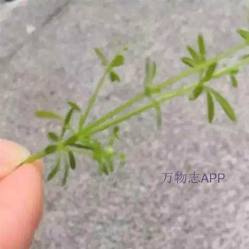 六叶葎 Ehrend. & Schönb.-Tem. ex R. R. Mill)是茜草科拉拉藤属的一年生草本。常直立,有时披散状,高10-60厘米左右,近基部分枝,有红色丝状的根;茎直立,具疏短毛或无毛;叶片薄,纸质或膜质,长圆状倒卵形、倒披针形、卵形或椭圆形顶端钝圆而具凸尖;聚伞花序顶生和生于上部叶腋,苞片常成对披针形,花冠白色或黄绿色,裂片卵形,雄蕊伸出;果近球形,单生或双生,密被钩毛;花期4-8月;果期5-9月。六叶葎分布于中国北、山西、陕西、甘肃、江苏、安徽、浙江、江西、河南、湖北等地,印度、巴基斯坦、尼泊尔、锡金、不丹、缅甸、日本、朝鲜、俄罗斯均有栽培。生于海拔920-3800米的山坡、沟边、河滩、草地的草丛或灌丛中及林下。六叶葎味甘,性平,具有清热解毒、利尿消肿的功效,可用于治疗尿路感染、赤白带下、痢疾、痛肿、跌打