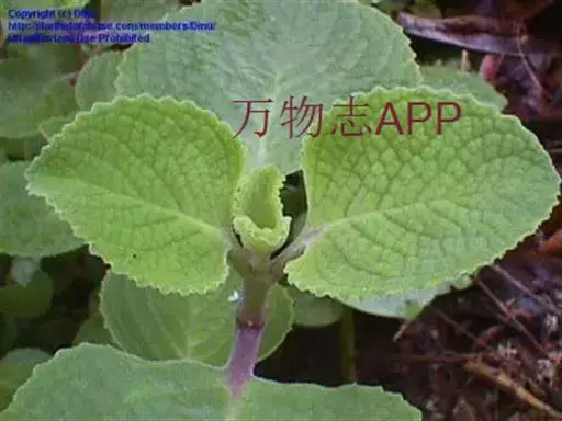 多年生常绿草本,株高20-90厘米。茎蔓生,匍匐状细弱,茎枝棕色,嫩茎绿色,分枝多,全株被有细密的白色绒毛。叶对生,肥厚,肉质,卵圆形,先端钝尖,光滑厚革质,基部近截平,边缘有钝锯齿,叶绿色,具柄。穗状花序,花小白色,顶生或腋生,小花唇形,淡紫色。瘦果。花期春至秋季。 [1-2]