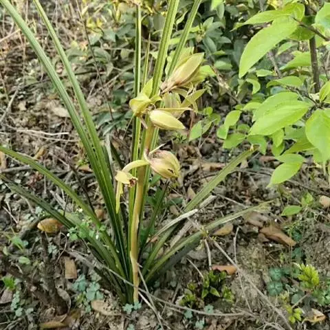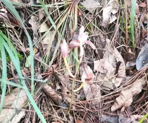 大根兰(学名:Cymbidium macrorhizon Lindl.):腐生植物,无绿叶,亦无假鳞茎,地下有根状茎;根状茎肉质,白色,斜生或近直立,常分枝。花葶直立,紫红色,中部以下具数枚圆筒状的鞘;总状花序具2-5朵花;花白色带黄色至淡黄色,萼片与花瓣常有1条紫红色纵带,唇瓣上有紫红色斑;花瓣狭椭圆形,长1.5-1.8厘米,宽5-6毫米;唇瓣近卵形,长1.3-1.6厘米,略3裂。花期6-8月。