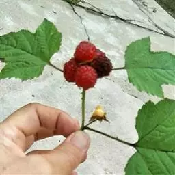 覆盆子为灌木,高1—2米;枝褐色或红褐色,幼时被绒毛状短柔毛,疏生皮刺。小叶3-7枚,长卵形或椭圆形,…