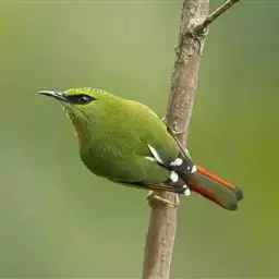 火尾绿鹛是莺科、绿鹛属小型鸟类,体长11-14厘米。上体绿色,头顶至枕具黑色鳞状斑,眼先和眼后黑色,…