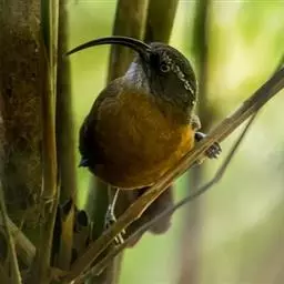剑嘴鹛:中型鸟类,体长21-22厘米。嘴特别细长而向下弯曲,头顶和头侧烟灰色具长而窄的白色眉纹,…