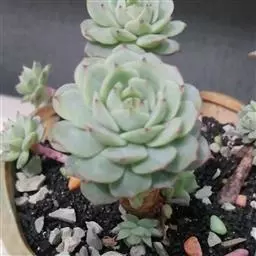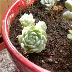 此外还可用老株旁边萌发的幼株进行扦插。扦插前需将切口晾干,再将下端茎干浅埋入沙土中。其余注意事项同叶插。扦插介质需使用疏松的沙质土壤,以便植株的根系能够良好地生长。
