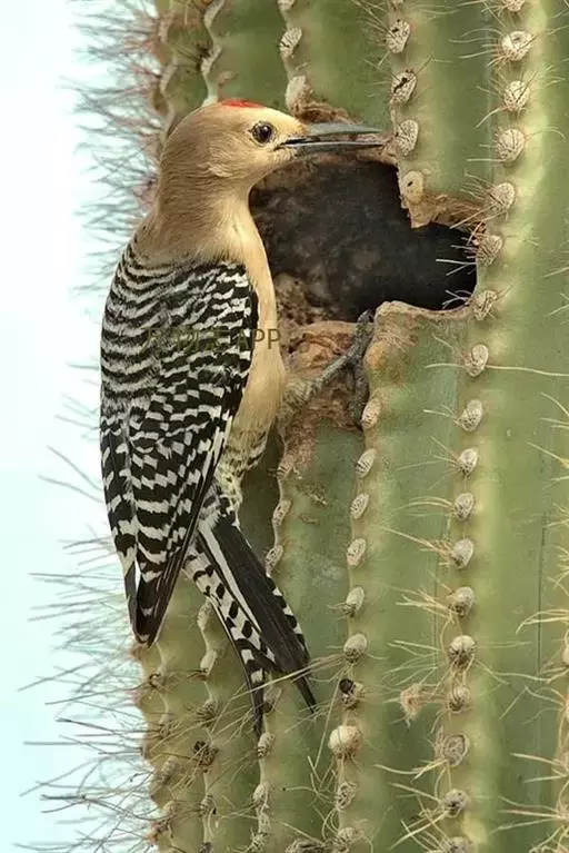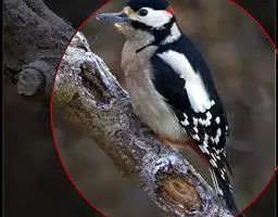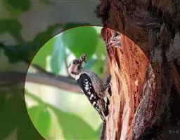绒啄木鸟,北美洲最小的啄木鸟,白腹黑背和黑项,黑翼上有白色斑点。头部有黑白相间的条纹,尾巴短小,雄…