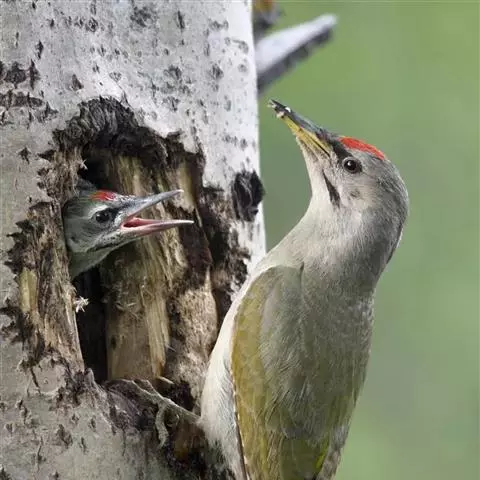 攀木觅食时以嘴叩树,叩得非常快,频率达每秒15~16次。头骨十分坚固,大脑周围有一层绵状骨骼,内含液体,对外力能起缓冲和消震作用;头骨周围还具有起减震作用的肌肉,能把喙尖和头部始终保持在一条直线上。每年錾树洞营巢,吃食昆虫及树皮下的蛴螬,如天牛幼虫、吉丁虫等,对防治林木害虫起到重要的作用,