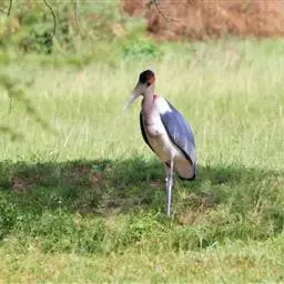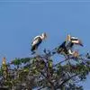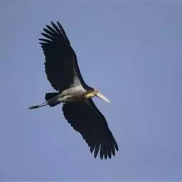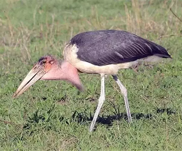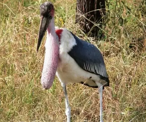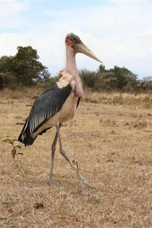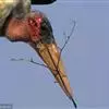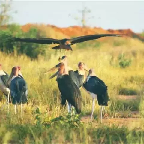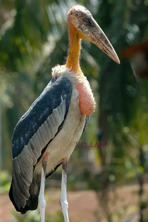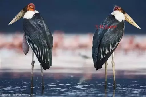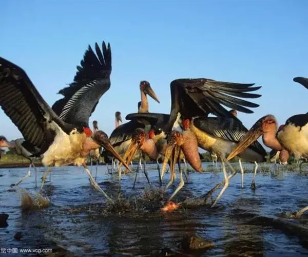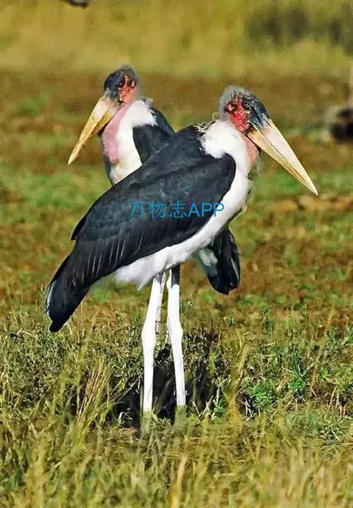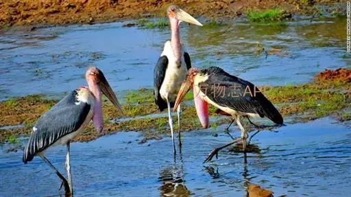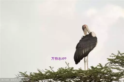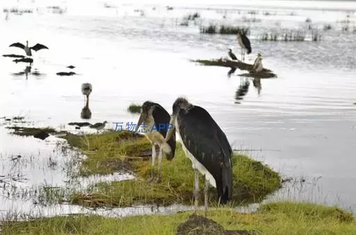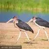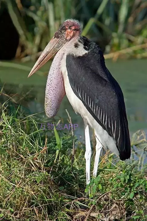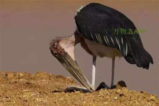 非洲秃鹳 非洲秃鹳栖居在河流、湖泊、沼泽、草地等地带,甚至靠近人类居住区,集群,日行性,飞翔沉重、缓慢。留鸟。颈下部的膨胀肉垂(喉囊)用于求偶炫耀。