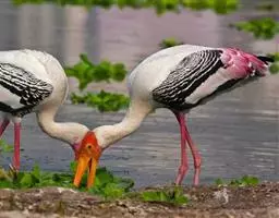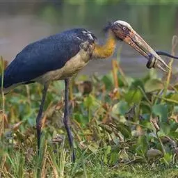 彩鹳:鹳科、鹮鹳属的鸟类。体长93-102厘米,体重2-3.5千克。橙黄色的嘴粗而长,…