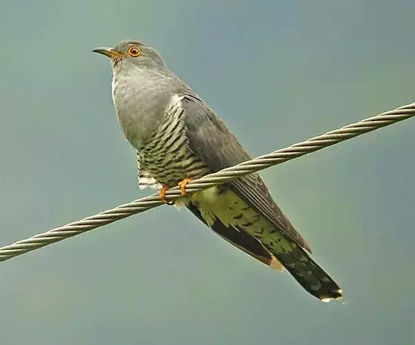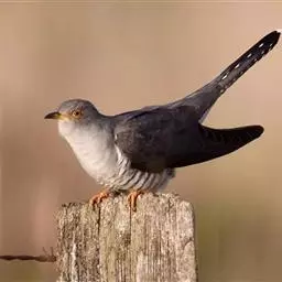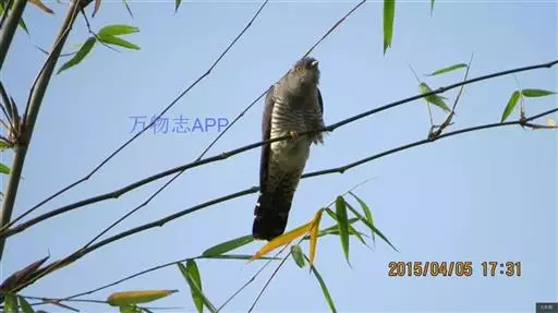 大杜鹃(学名:Cuculus canorus bakeri):是普通杜鹃的中国亚种。体长约320毫米,翅长约210毫米。雄鸟上体纯暗灰色;两翅暗褐,翅缘白而杂以褐斑;尾黑,先端缀白;中央尾羽沿着羽干的两侧有白色细点;颏、喉、上胸及头和颈等的两侧均浅灰色,下体余部白色,杂以黑褐色横斑。雌雄外形相似,但雌鸟上体灰色沾褐,胸呈棕色。又名喀咕、布谷、子规、杜宇、郭公、获谷等。