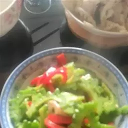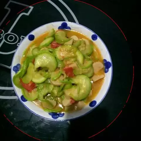 主料:干瑶柱(30克)、丝瓜(500克)、红椒(半只)