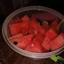 3 将一张铝箔纸放在碟上,压制成方型的盒状,摆入丝瓜块。