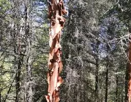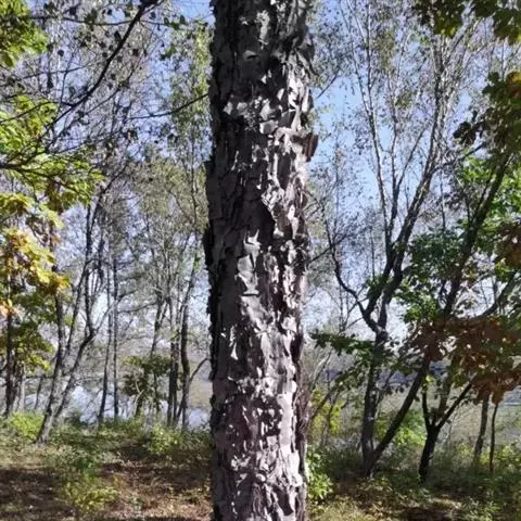 乔木,高可达20m,胸径可达80cm;树皮红褐色或暗黄灰色,坚密,平滑;枝条红褐色,无毛,有蜡质白粉;小枝黄褐色,密被淡黄色短柔毛,疏生树脂腺体;芽鳞无毛,边缘被短纤毛。