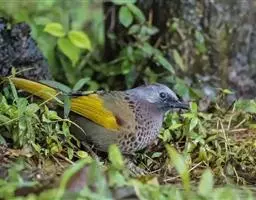 黄喉雀鹛是雀眉科、拟希鹛属小型鸟类,体长11-12厘米。头顶浅黄色具黑色鳞状斑,…