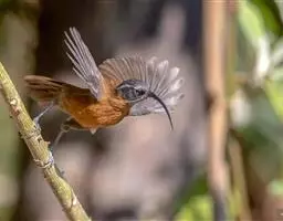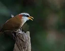 黑额山噪鹛是噪眉科、噪鹛属中型鸟类,体长27-31厘米。上体橄榄褐色,尾上尾下覆羽棕红色,…