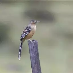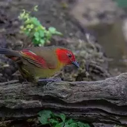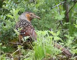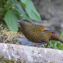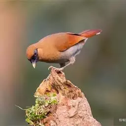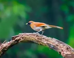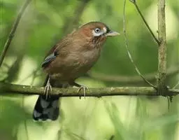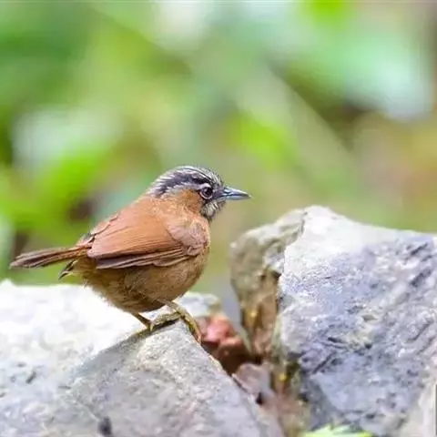 大噪鹛:中型鸟类,体长32-36厘米。额至头顶黑褐色,背栗褐色满杂以白色斑点,…