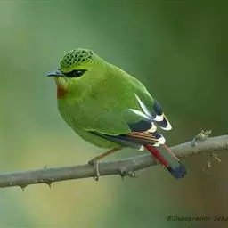 白腹凤鹛是绿鹃科、绿凤鹛属的小型鸟类,体长10-12厘米。上体从头到尾黄绿色,有短的羽冠,…