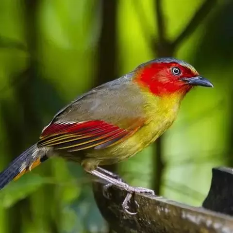 丽色噪鹛是红翅噪鹛的指名亚种。中型鸟类,体长23-28厘米。头顶灰橄榄褐色具粗著的黑色纵纹,头侧、…