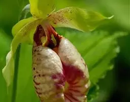 绿花杓兰:植株高30-60厘米,具较粗短的根状茎。茎直立,被短柔毛,基部具数枚鞘,鞘上方具4-5枚叶。…