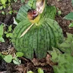 斑叶杓兰:植株高约10厘米,地下具较粗壮而短的根状茎。茎直立,较短,顶端具2枚叶。叶近对生,…