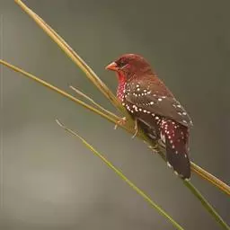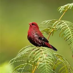 红梅花雀小型鸟类,体长9-10厘米。雄鸟通体朱红色,背、肩、胸等满布白色小斑点,…