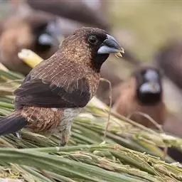 栗腹文鸟:小型鸟类,体长10-12厘米。嘴蓝灰色,基部粗厚,先端尖、呈圆锥状, 脚亦为蓝灰色,整个…