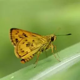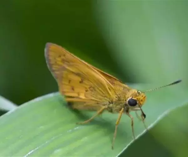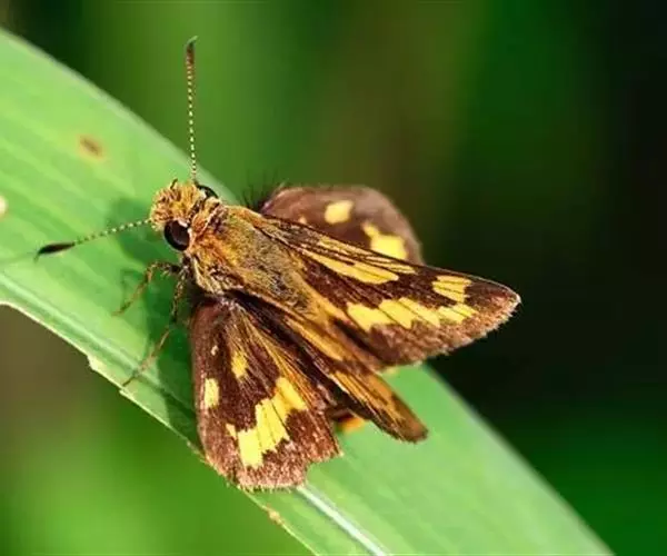 黄斑弄蝶Potanthus confucius Felder是近年来发现在我地区为害水稻的新害虫。在国内尚未见报道。 由于幼虫在水稻和黄茅草上绝大多数以单叶卷筒为害, 且叶苞较小, 一般情况下易被忽视。