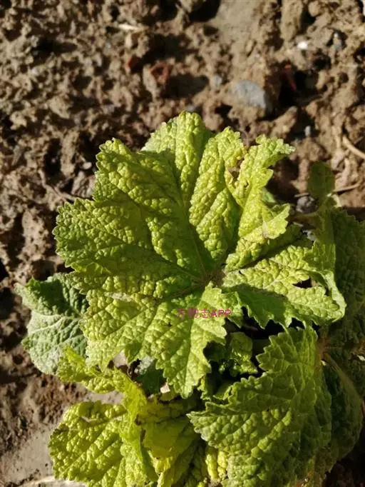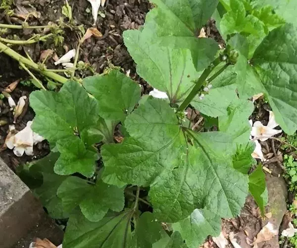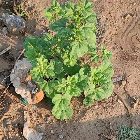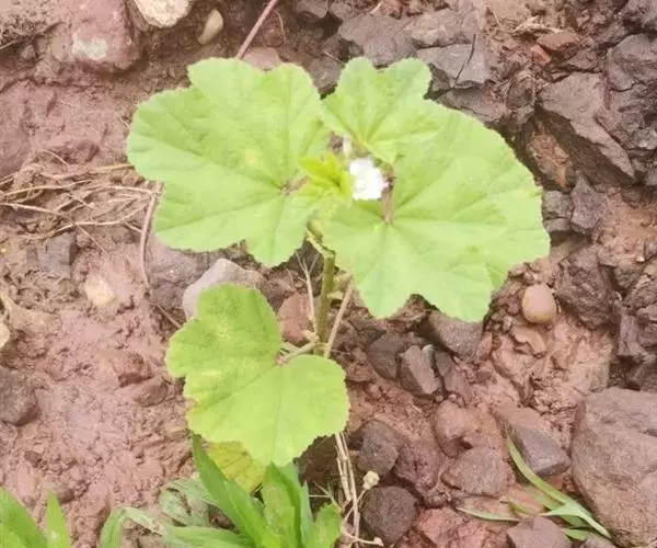 一年生草本,高1米;不分枝,茎被柔毛。叶圆形,常5-7裂或角裂,径约5-8厘米,基部心形,裂片三角状圆形,边缘具细锯齿,并极皱缩扭曲,两面无毛至疏被糙伏毛或星状毛,在脉上尤为明显;叶柄瘦弱,长4-7厘米,疏被柔毛。