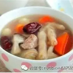 4.然后两小段党参、两小片黄芪、一小片干何首乌,高压锅压个15分钟,开盖后,撇掉汤面上过多的油份。