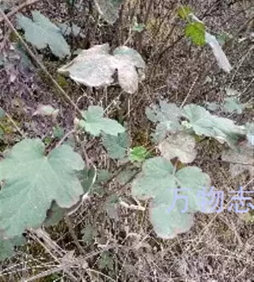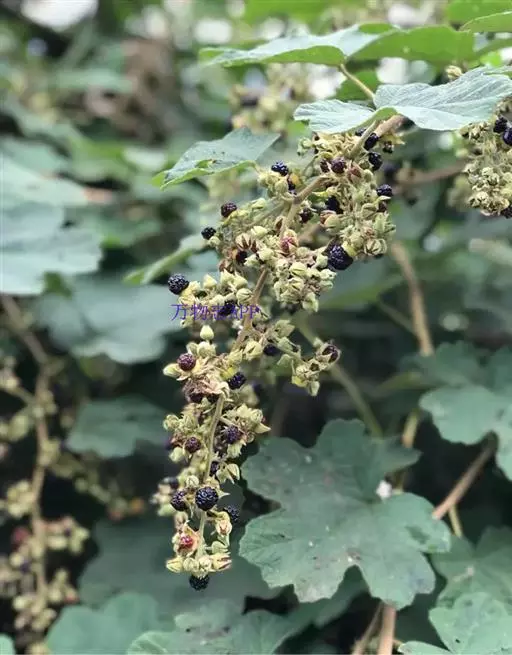落叶灌木,高2-3米;小枝圆柱形,密被淡黄色绒毛状柔毛,老时脱落,无刺。叶子直径7-15厘米,顶端圆钝或近截形,基部心形,上面粗糙,无毛或仅沿叶脉稍具柔毛,下面密被灰白色绒毛,有时绒毛逐渐脱落,叶脉突起,基部具掌状5出脉,侧脉2-3对,边缘5-7浅裂,裂片圆钝或急尖并再浅裂,有不整齐浅钝锯齿;叶柄长5-7 厘米,具浅黄色绒毛状柔毛,常无刺;托叶离生,卵状披针形,顶端条裂,早落。花成狭圆锥花序,顶生或腋生或花少数簇生于叶腋;总花梗和花梗均密被浅黄色绒毛状柔毛;花梗长约1厘米;苞片与托叶相似;花直径1-1.5厘米;花萼外密被浅黄色绒毛和柔毛;萼片卵状披针形,顶端尾尖,全缘或外萼片顶端浅条裂,在果期直立,稀反折;花瓣倒卵形或近圆形,紫红色,基部具爪,比萼片短很多;雄蕊较短,花丝线形;雌蕊无毛,花柱比雄蕊长。果实直径约1厘米,黑色,无毛,常包藏在宿萼内;核较光滑。花期7-8月,果期9-10月。