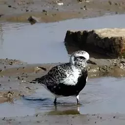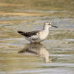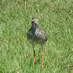 红脚鹬:体长28厘米,上体褐灰,下体白色,胸具褐色纵纹。飞行时腰部白色明显,次级飞羽具明显白色外缘。…