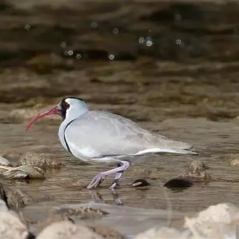 黑嘴鸥 中型水鸟,体长31~39厘米。嘴黑色,脚红色。夏羽头黑色,眼上和眼 下具白色星月形斑,在黑…