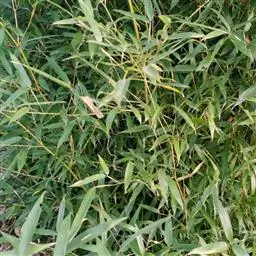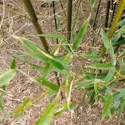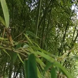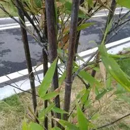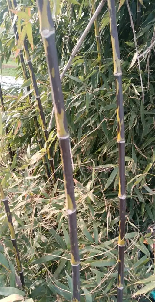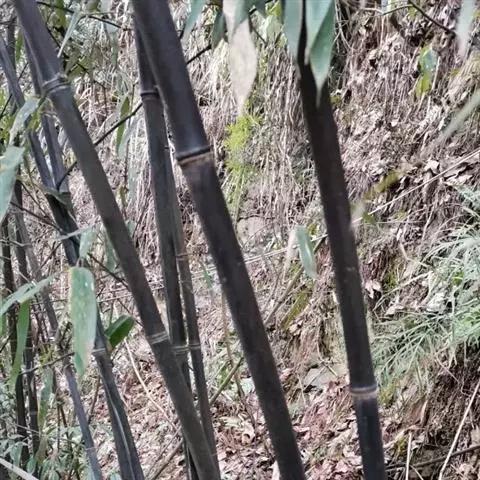 紫竹(学名:Phyllostachys nigra (Lodd. ex Lindl.)Munro):竿高4-8米,稀可高达10米,直径可达5厘米,幼竿绿色,密被细柔毛及白粉,箨环有毛,一年生以后的竿逐渐先出现紫斑,最后全部变为紫黑色,无毛;箨片三角形至三角状披针形,绿色,但脉为紫色,舟状,直立或以后稍开展,微皱曲或波状。末级小枝具.2或3叶;叶片质薄,长7-10厘米,宽约1.2厘米。花枝呈短穗状,佛焰苞4-6片,除边缘外无毛或被微毛,叶耳不存在,鞘口繸毛少数条或无,缩小叶细小,通常呈锥状或仅为一小尖头,亦可较大而呈卵状披针形。小穗披针形,长1.5-2厘米,具2或3朵小花;花药长约8毫米;柱头3,羽毛状。笋期4月下旬。