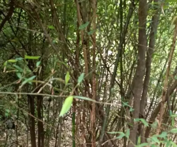 除保留分枝3-5个节的小段外其余枝叶全部剪除。对于选中的分枝,在同一母竹上,竹秆的上、中、下部位节上发育的枝芽质量是完全不同的。一般而言,上部竹节分枝较好,但因母竹上部直径小,节间短,贮藏养分少,竹芽发笋消耗养分后易退笋。母竹下部由于受光少,主枝发育不良,甚至无主枝和芽,仅有的分枝也普遍较为瘦弱。母竹中部各节分枝发育良好,隐芽饱满充实,生活力强,生长快,竹秆贮藏养分丰实,埋植后成活率较高,此部分是最理想的连秆埋枝育苗繁殖材料。