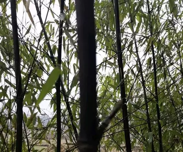 紫竹竿高4-8米,稀可高达10米,直径可达5厘米,幼竿绿色,密被细柔毛及白粉,箨环有毛,一年生以后的竿逐渐先出现紫斑,最后全部变为紫黑色,无毛;中部节间长25-30厘米,壁厚约3毫米;竿环与箨环均隆起,且竿环高于箨环或两环等高。箨鞘背面红褐或更带绿色,无斑点或常具极微小不易观察的深褐色斑点,此斑点在箨鞘上端常密集成片,被微量白粉及较密的淡褐色刺毛;箨耳长圆形至镰形,紫黑色,边缘生有紫黑色繸毛;箨舌拱形至尖拱形,紫色,边缘生有长纤毛;箨片三角形至三角状披针形,绿色,但脉为紫色,舟状,直立或以后稍开展,微皱曲或波状。