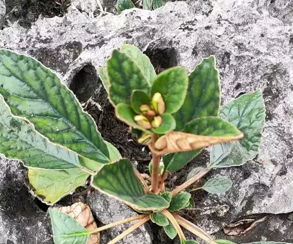 小灌木。茎常弯曲,高达30厘米,叶片长圆形,长圆状倒披针形或披针形,花期6-7月,果期8月。 产广西西南部、云南西南部及东南部、贵州、四川东南部及湖北西部。生于山坡林下石缝中或陡崖上。缅甸、泰国及越南也有分布。 本种以花大,紫蓝色;萼片大,膜质,紫红色,倒卵状匙形,干时与花冠同色,顶端圆形