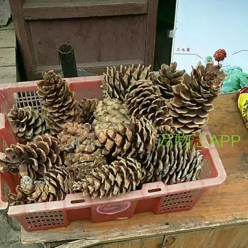 红松(Pinus koraiensis Sieb. et Zucc.)裸子植物,常绿乔木,高可达40米。小枝密生褐色柔毛。叶5针一束,粗硬,树脂道3个,叶鞘早落。球果卵状圆锥形,种鳞先端钝,向外反曲,成熟时种子不脱落。种子大,长1.2~1.6厘米,无翅。产于中国东北长白山到小兴安岭,常同鱼鳞松、红皮云杉组成混交林。耐寒性强,喜微酸性土或中性土。木材轻软、细致、纹理直、耐腐蚀性强,为建筑、桥梁、枕木、家具优良用材;树皮可提取栲胶,树干可采松脂;种子供食用或药用,又可榨油供食用及工业用。为产地主要造林树种,又为观赏树。