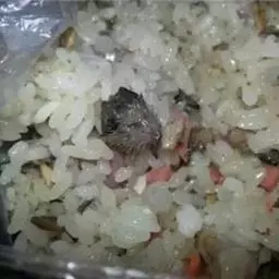 糯米淘洗干净后,浸泡一晚上后,控干水分,上笼蒸约40分钟;紫菜和虾米泡软,并将紫菜切成细末。
