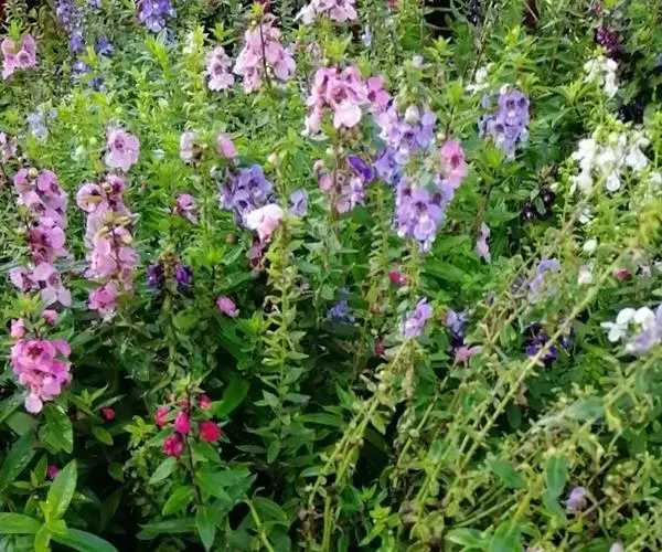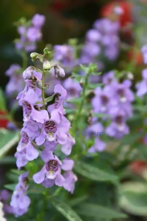 香彩雀(Angelonia salicariifolia Humb.)为玄参科香彩雀属多年生草本观花植物。耐热、喜光、 耐半荫,能适应水生及陆生的栽培,花色丰富而 艳丽、花期长,是花坛、花境及切花的优选素材。香彩雀其花植株高30~60cm,茎杆直径 0.3~ 0.6cm,叶对生或上部的互生、无柄、披针形或条 状披针形,长 7 cm,具尖而向叶顶端弯曲的疏齿;花单生叶腋、花梗细长、花萼长3cm,裂片披针形、渐尖,花冠蓝紫色、白色或蓝紫白色。原产美洲,我国广东、海南有栽培,西双版纳热带植物园于 2003 年引种种植于浅水中,长势非常好。一年四季花开不断,春、夏、秋季盛花,冬季花渐少,但未间断过花蕾和绽放的花朵。花色艳丽,十分奇特,具有独特的观赏价值。 香彩雀花朵虽小,但花型小巧,花色淡雅,花量大,开花不断,观赏期长,且对炎热高湿的气候有极强的适应性,可以地栽、盆栽、容器组合栽植。