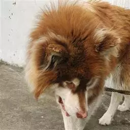 能抵御任何气候条件的被毛是由两层毛组成的,披毛长、平坦、厚实,毛发粗硬,毛直或略呈波浪形;底毛浓密、纤细、棉絮状。雄性颈部和肩部的毛发尤其浓密,形成围脖或鬃毛。尾巴上较长的毛发形成羽状饰毛。饰毛还延伸到前肢后面和大腿后面,形成“裤子”的效果。脸部和耳朵的毛发短而质地好。正确的被毛比毛量更为重要。缺陷:卷曲的被毛;直立的被毛(象萨摩犬)。