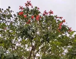 菜豆树,别名:山菜豆、苦苓舅、豇豆树、辣椒树、接骨凉伞、森木凉伞、朝阳花、牛尾木、豆角木、牛尾豆、蛇仔豆、鸡豆木、大朝阳、跌死猫树,拉丁文名:Radermachera sinica (Hance) Hemsl.),紫葳科、菜豆树属小乔木,叶柄、叶轴、花序均无毛。2回羽状复叶,稀为3回羽状复叶,小叶卵形至卵状披针形,顶端尾状渐尖,基部阔楔形,全缘,向上斜伸,两面均无毛。性喜高温多湿、阳光足的环境,生于山谷或平地疏林中;在中国的热带地区如广东、台湾等地分布,在国外的印度、菲律宾等国也有分布。根、叶、果入药,可凉血消肿,治高热、跌打损伤、毒蛇咬伤。木材黄褐色,质略粗重,年轮明显,可供建筑用材。枝、叶及根又治牛炭疽病。
