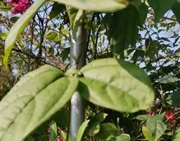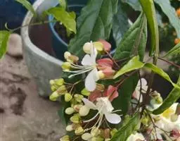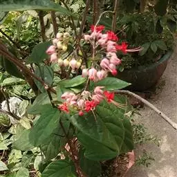 红萼龙吐珠马鞭草科大青属常绿木质藤本。叶对生,纸质,具柄,卵状椭圆形,全缘,先端渐尖,基部近圆形。…
